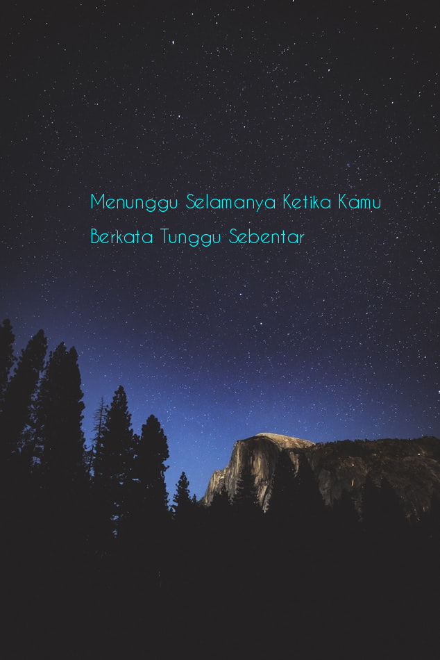 Tersembunyi apapun seseorang ia pasti akan bertemu dengan jodohnya. Jika kepalanya hilang maka keseluruhan tubuh itu akan membusuk. Karena tuhan itu tahu, kapan waktu yang tepat untuk dia menyentuh hatimu. Aku yakin di balik semua kesedihan yang kurasakan ini pasti ada kata kata sabar dalam penantian. Terkadang berbagai masalah yang dihadapi seseorang dapat menimbulkan rasa keterpurukan serta putus asa.